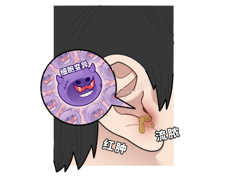 细菌侵入,会引发细菌性外耳道炎,导致耳朵红肿、灼热、流脓。