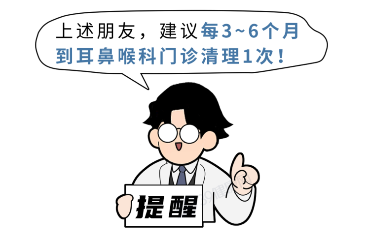 这类人群由于耳道天生较窄、弯曲,其耳道皮肤的自我清洁功能会比普通人弱一些,无法正常排出耳屎,因此需要定期清理。