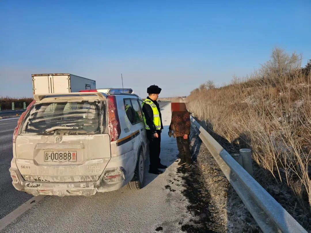 2026年1月1日13时50分许,吉林省公安厅交通管理总队高速公路长春支队巡逻七大队民警按照工作部署,在辖区开展日常巡逻防控工作,全力保障道路通行安全。当巡逻至京哈高速哈尔滨方向1120公里处时,民警发现一名老人竟在车流密集的高速公路超车道上行走,过往车辆纷纷紧急减速、变道避让,稍有不慎便可能引发严重交通事故,现场情况十分危急。