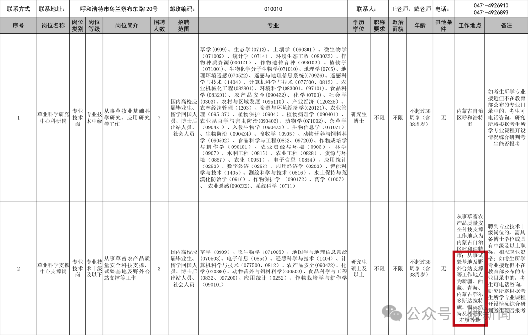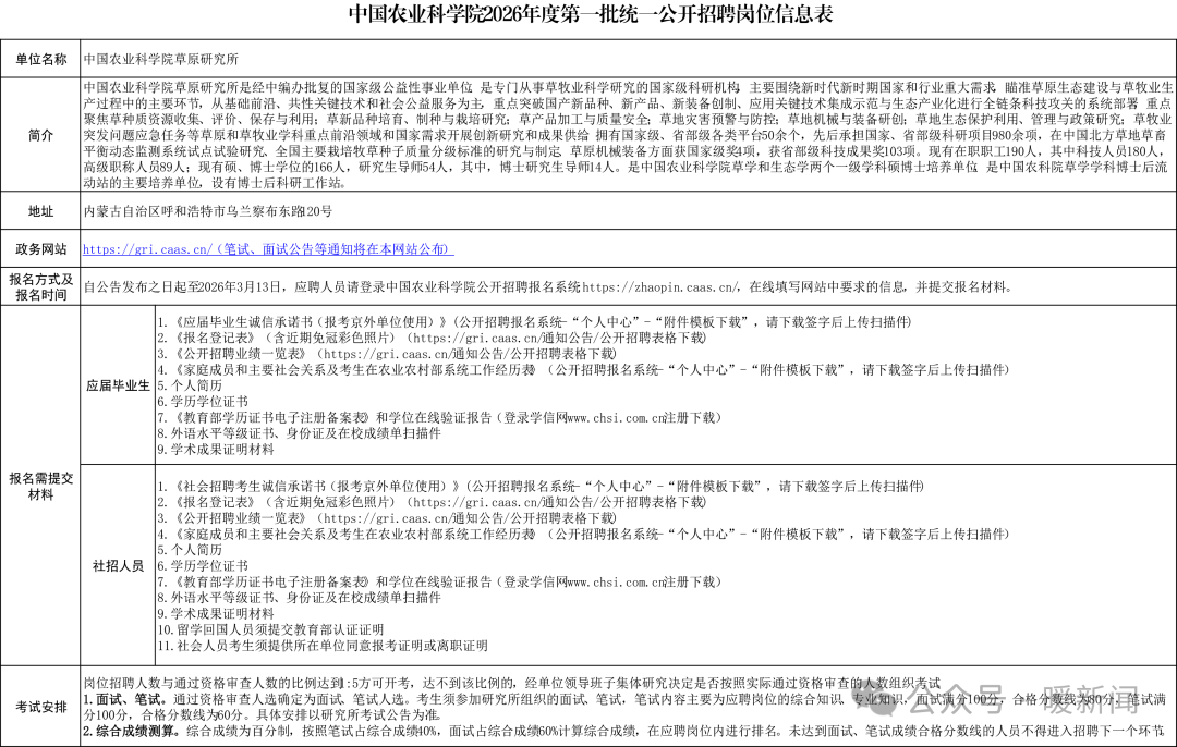 事业编制!中国农业科学院招聘359人!工作地有鄂尔多斯→