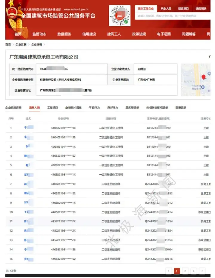 (图为广东潮通建筑总承包工程有限公司部分注册工程师名单)