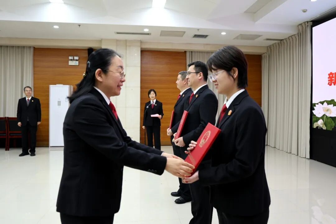 仪式上,党组书记、院长何艳真为新入额法官颁发了任命书。随后,3名新任员额法官整装肃立,高举右拳,庄严宣誓,“我宣誓:忠于中华人民共和国宪法,维护宪法权威,履行法定职责,忠于祖国、忠于人民,恪尽职守、廉洁奉公,接受人民监督,为建设富强民主文明和谐美丽的社会主义现代化强国努力奋斗!”
