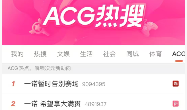 一诺暂别赛场的微博很快就成为ACG热搜第一。
