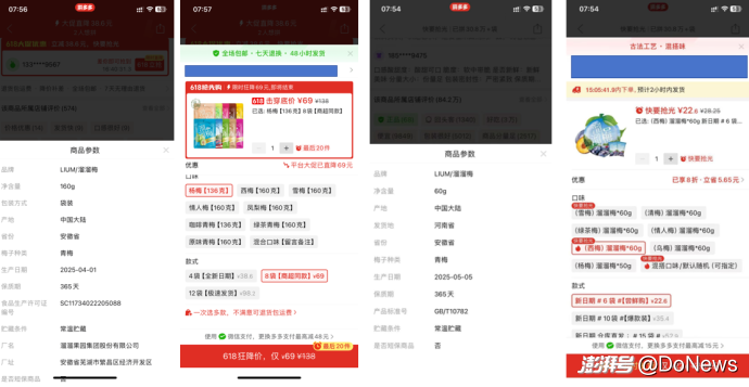 “价盘失守”是2025年零食行业,短期需直面的核心痛点。例如,60g溜溜梅西梅、136g杨梅的电商到手价分别为3.54元/袋、8.625元/袋,而联华超市同款售价达5.5元/袋、12.5元/袋,价差最高近4元。