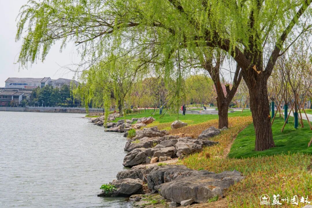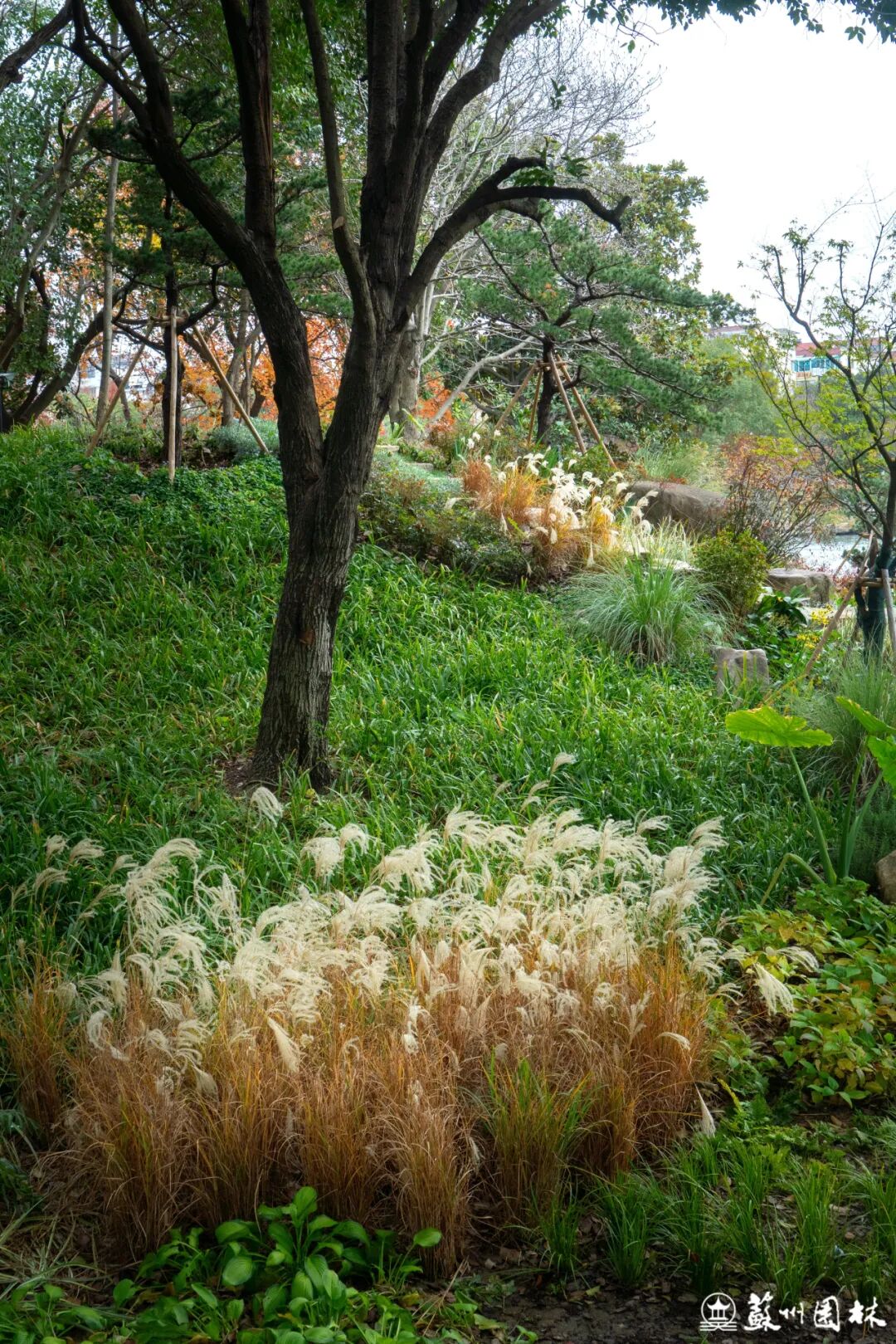 环古城河南侧的桂花公园段,通过“悠水红林”的色叶景观,显著提亮了滨水界面。让古老的城墙、芬芳的桂花与运河水景更充分地“古今交融”、互为映衬,绘就一幅四季变幻的风景长卷。
