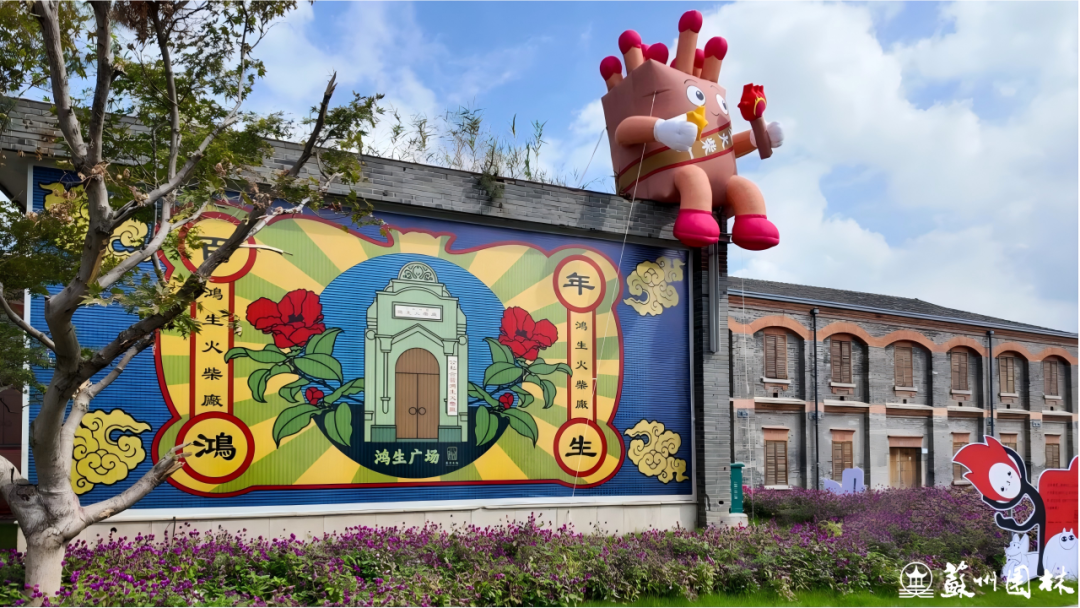 作为工业遗存焕新的代表,鸿生火柴厂在转型为文化地标的同时,也点缀上灵动的绿化。项目周边,一片热烈的千日红搭配棒棒糖、爱心等造型的亮晶女贞,为厚重的历史背景墙增添了盎然生机与观赏趣味。