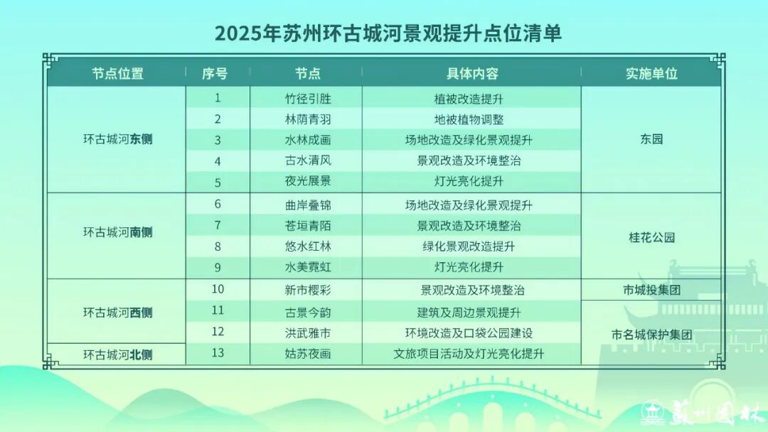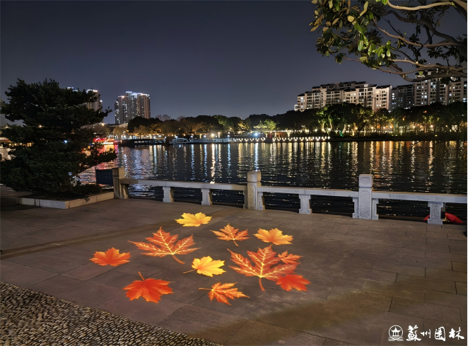 当夜幕降临,东园与桂花公园段的灯光悄然亮起。本次灯光亮化工程秉承“园林外移”理念,用柔和温暖的灯光,精心勾勒亭台轮廓,细腻烘托假山叠石,让苏式园林的美学韵味在夜晚得以延续,为夜行增添一份安全与雅致。