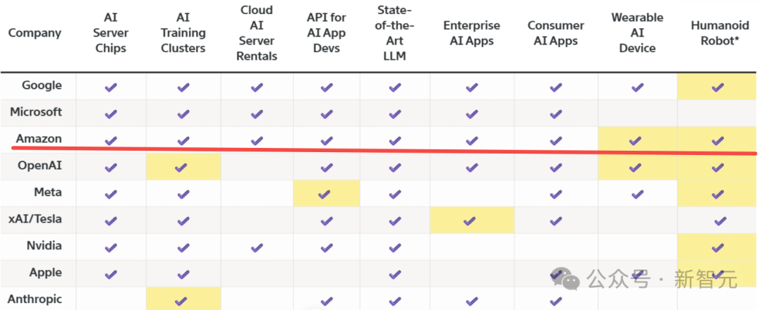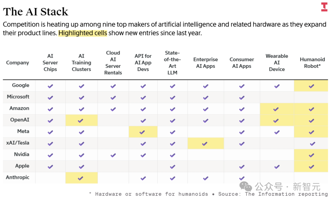 可以看到几乎所有公司都在致力于构建更完整的AI「技术栈」,以此提升自身地位。