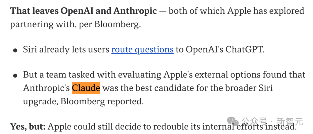 据多方消息源透露,苹果的工程团队实际上更倾向于Anthropic的Claude模型。
