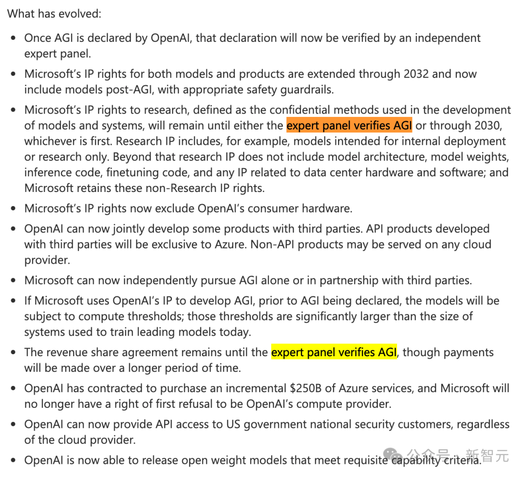 但纳德拉加了一个关键条款:AGI的定义不再由OpenAI单方面说了算,而是需要一个「独立专家小组」来验证。