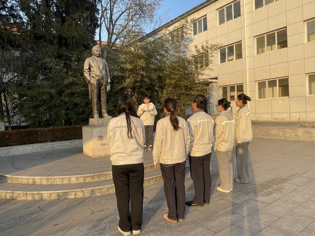中车南口公司青年在詹天佑塑像前,感受铁路先驱的报国情怀。