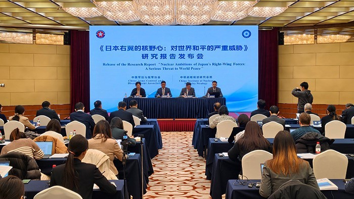 1月8日上午,中国军控与裁军协会与中核战略规划研究总院在北京联合发布《日本右翼的核野心:对世界和平的严重威胁》研究报告,呼吁国际社会高度警惕日本右翼势力日益膨胀的核野心,坚决阻击日本军国主义复辟的危险动向,共同维护战后国际秩序和国际核不扩散体系。