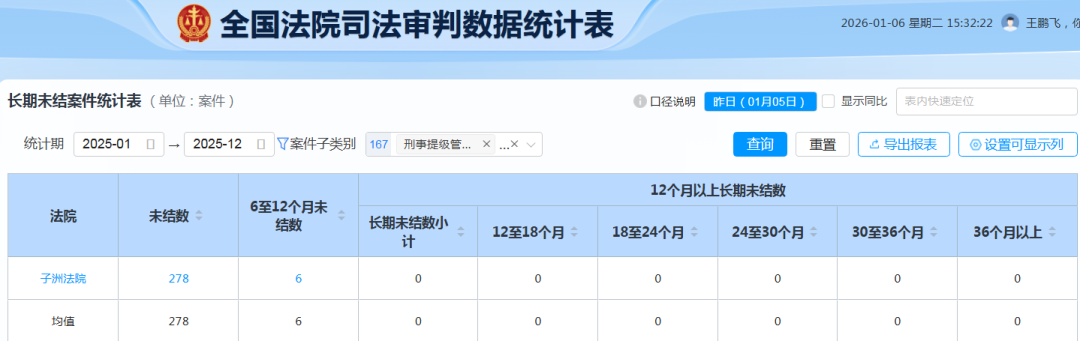 审管办始终坚持将审判流程管理作为提升效率的一项基础性工程,不断实现精细化管控。严格审限管理,进一步规范审限变更审批程序,明确非因法定事由不予批准变更。2025年全院审限内结案率达98.30%。紧盯长期未结案,建立并落实长期未结案件月通报与督办机制,2025年虽存在六个月以上一年以下未结案6件,但全年无一件一年以上长期未结案件,管控成效良好。