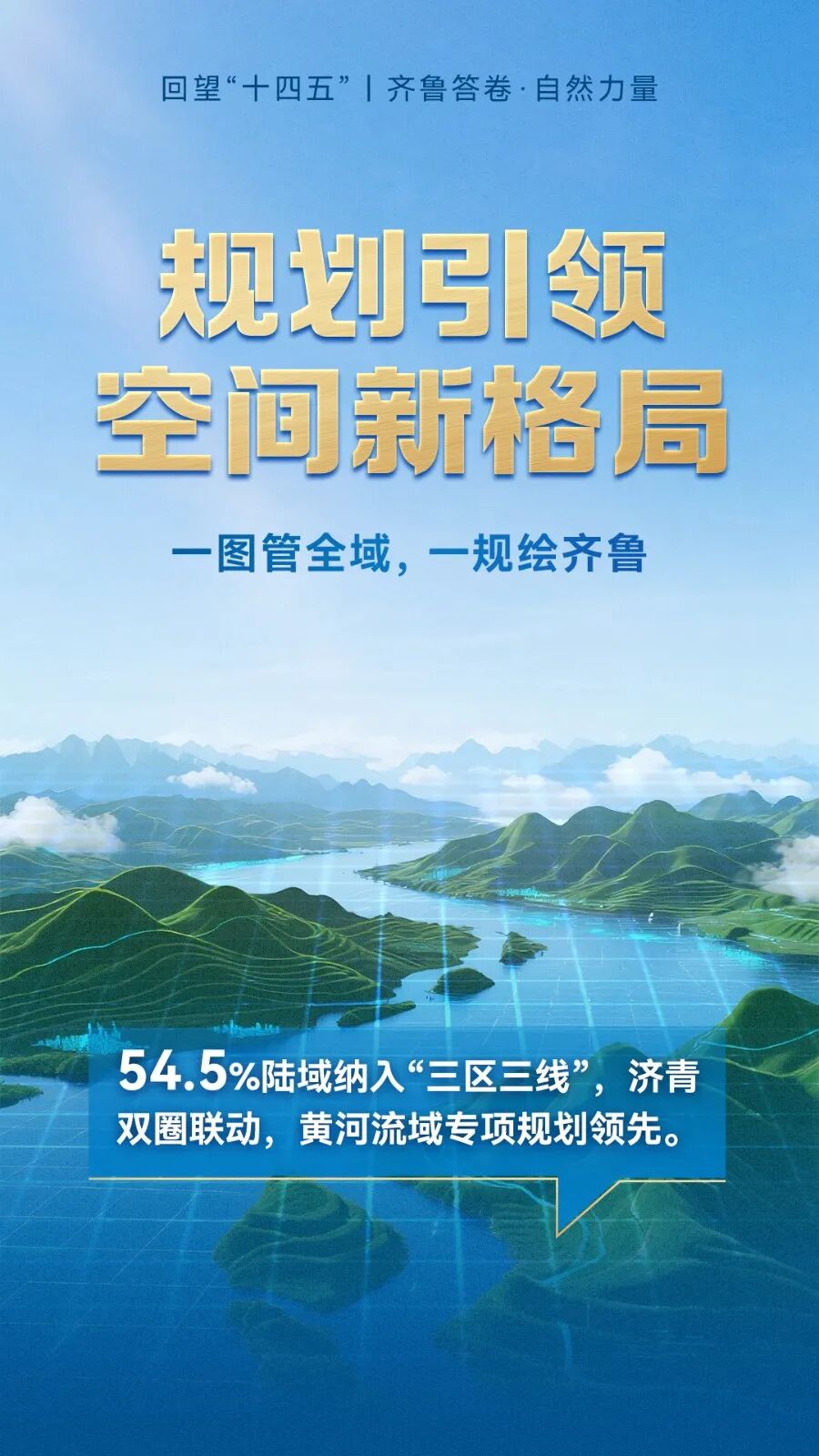 从一幅蓝图到一片实景,从一纸规划到一方沃土,“十四五”期间,山东自然资源系统以“自然力量”书写齐鲁大地的绿色答卷。每一张海报,都是山东在自然资源管理与可持续发展道路上的坚实足迹;每一个数字,都见证着绿水青山向金山银山的生动转化。让我们透过视觉与数据,共同回顾这段从“山顶到海洋”的治理征程,感受齐鲁大地在自然资源领域的创新、担当与温度。