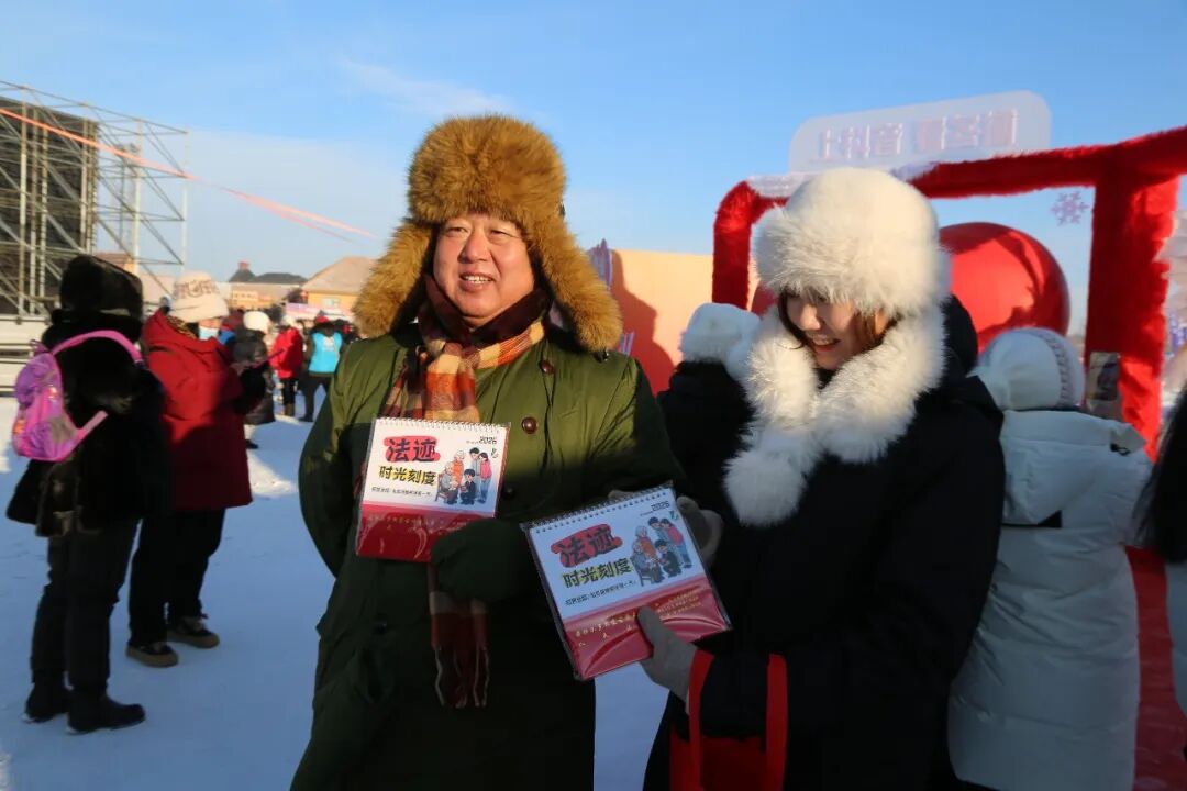 解惑释疑于冰湖之畔,送暖传情在摊位之前。冬捕开幕式现场,前郭法院设立的“法治摊位”人气十足。法官干警热情地接待每一位前来咨询的游客,耐心地解答关于旅游纠纷、消费者权益、生态环境保护等方面的法律问题,更将一份份由干警精心手绘、制作精美的前郭法院“普法日历”送到大家手中。“普法日历”匠心独具,精选与旅游、消费等紧密相关的温暖提示,并在对应时令旁精美配图,成为陪伴群众每一天的亲切指南。游客们翻阅时不禁赞叹:“这既是一本日历,也是一本画册,更是一本贴心的法律口袋书!”