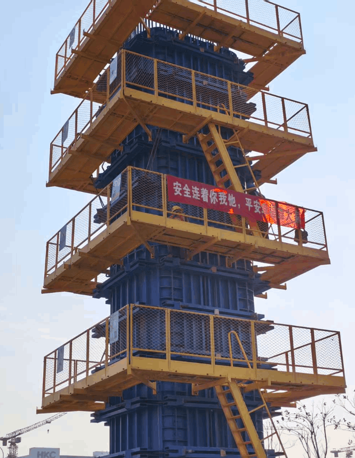长浏磁浮快线采用带作业平台一体式墩柱钢模+钢保限位器等技术。