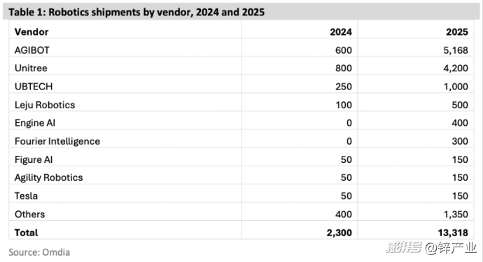 也就在CES 2026期间,市场调研机构Omdia给出了2025年全球人形机器人出货量统计数据,这份数据显示: