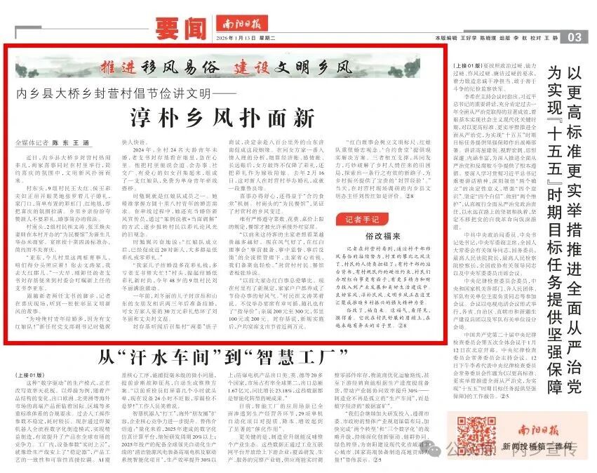原标题:《【南阳日报】内乡:淳朴乡风扑面新》