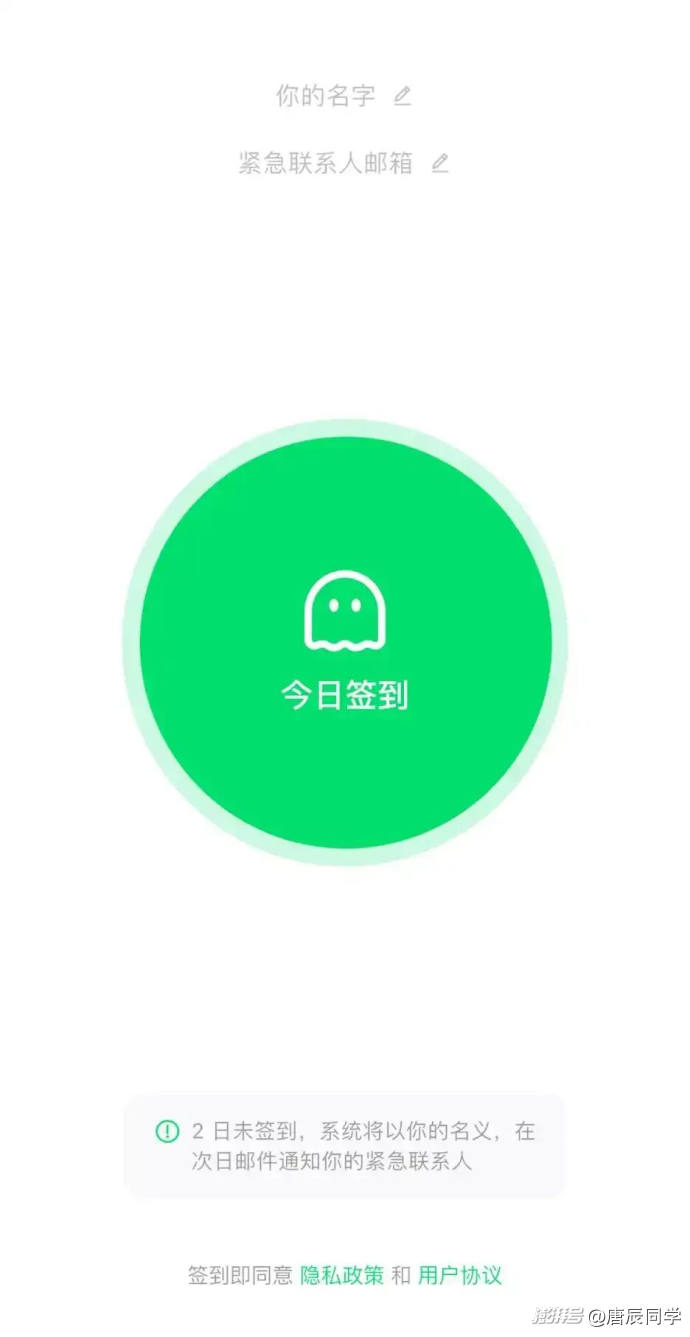 “死了么”APP看起来并不像一个完整形态的产品,往好了说是极简主义,准确来说是半成品。目前,该APP仅支持苹果iOS平台,用户付费下载后,无需注册,可设置紧急联系人,提供签到、邮件提醒等功能。