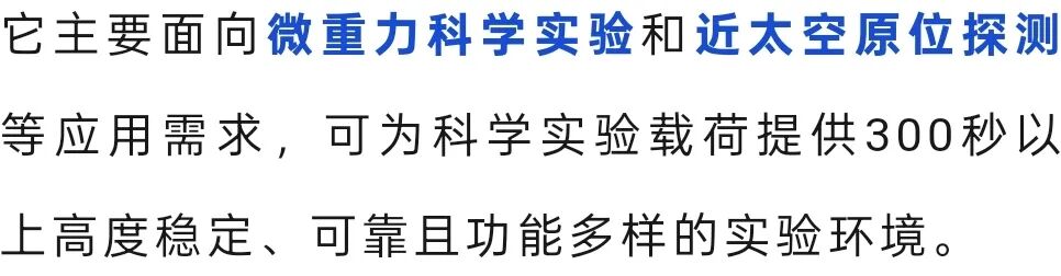 它类似一个缩比的飞船返回舱,可以搭载实验载荷在短暂的太空旅行中完成相关实验,并把成果带回地球。同时,这个载荷舱也是未来太空旅游的雏形。