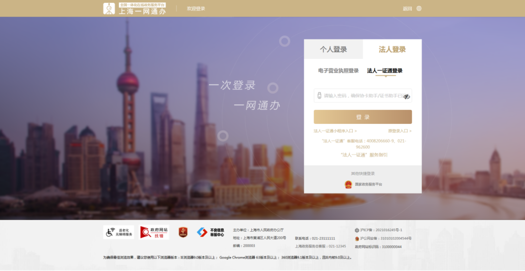 选择法人登录,通过扫码或法人一证通登录企业账号。