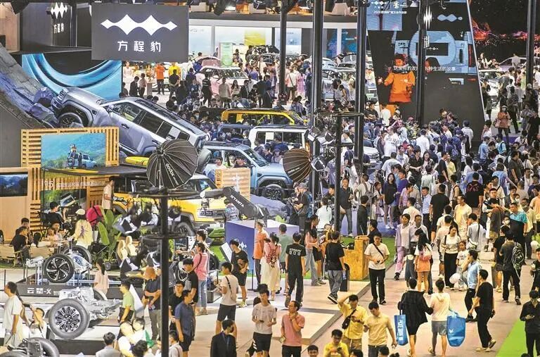 粤港澳大湾区车展上,比亚迪新能源汽车受到国内外消费者追捧。 深圳特区报记者 赖犁 摄