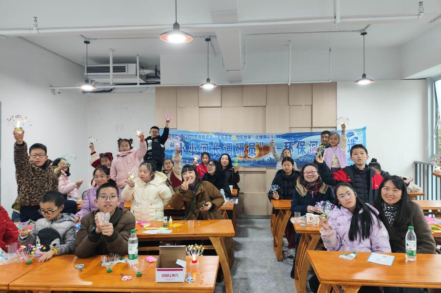 展示分享环节,青少年自信介绍作品理念,稚嫩话语传递出浓厚环保责任感,赢得现场掌声。活动最后,大家手持作品与横幅合影留念,在欢乐氛围中圆满落幕。