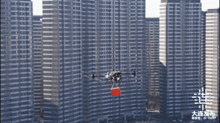 “嗡嗡嗡……”在金石滩喜家德门店旁的起降点,一架无人机缓缓升空。5分钟后,它平稳降落在大连民族大学校外的取货点,通过手机下单的学生,很快便取到了热乎乎的水饺。