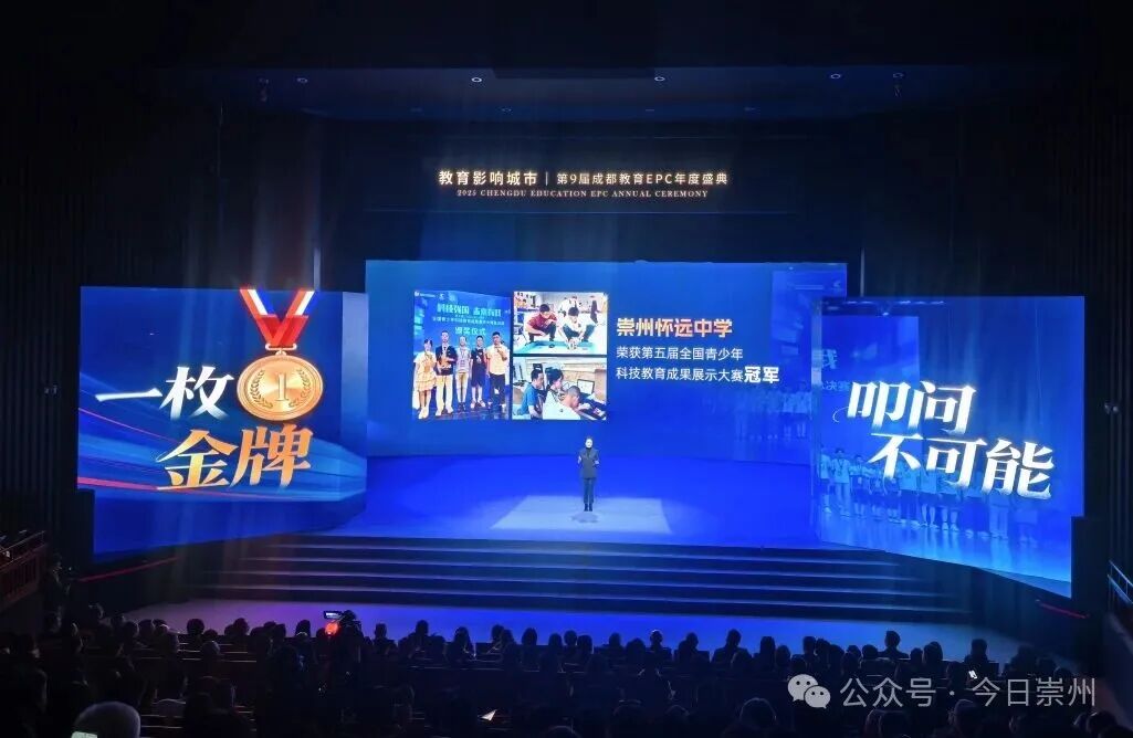 本届盛典通过案例与面孔的展示,凸显了教育多元发展的可能性。 无论是陈颢颖老师四十余年如一日在阅读花园中的深耕,还是怀远中学在科技赛场上的全国性突破,都体现了崇州教育工作者与学生“向前一步”的共同勇气。