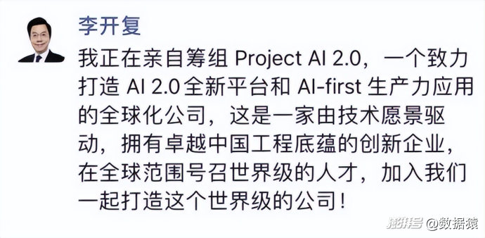 根据李开复当时的朋友圈,零一万物要在全球范围号召世界级的人才,一起打造一个世界级的公司。