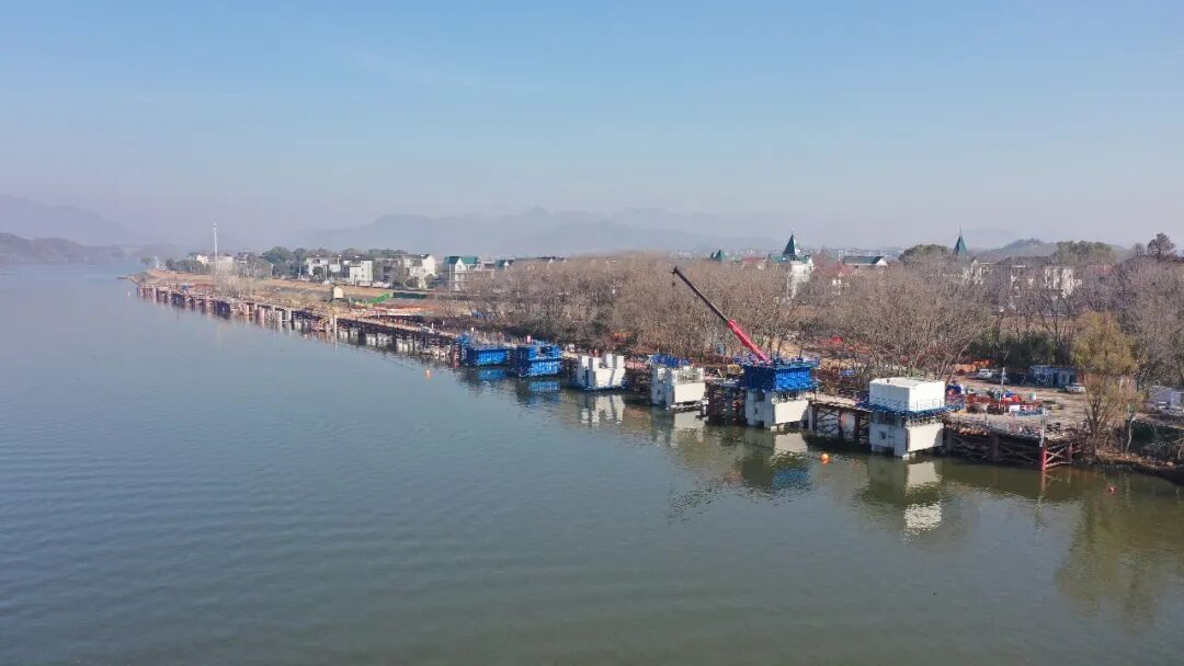 “施家埠锚地总长505.5米,将新建7个1000吨级泊位,共26个靠船墩。目前,靠船墩的水下桩基已全部完成,现在进行上部靠船墩墩台施工。其中,2个墩台的上下墩台已完成。”何松玮表示,靠船墩墩台完工后,将进行预制梁板的吊装,预计今年12月份完成锚地建设。此外,香溪锚地已完成交工验收,游埠和女埠锚地已完成主体施工。