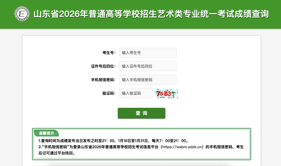 上述艺术专业各类别统考成绩于1月18日公布,请考生登录山东省教育招生考试院官方网站(http://www.sdzk.cn/)“成绩查询”栏目查询。