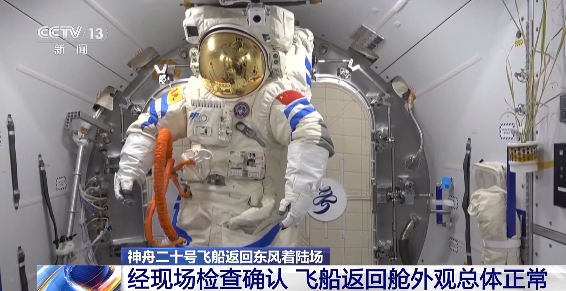总台央视记者 王刚:神舟二十号飞船返回舱是以直立状态返回地球,这也是神舟系列飞船16次返回任务中第3次以这样直立状态返回地球。虽然舷窗最外层玻璃出现裂纹,但是经过航天员在舱内的加固和密封,最终飞船经过重重考验,顺利返回地面。