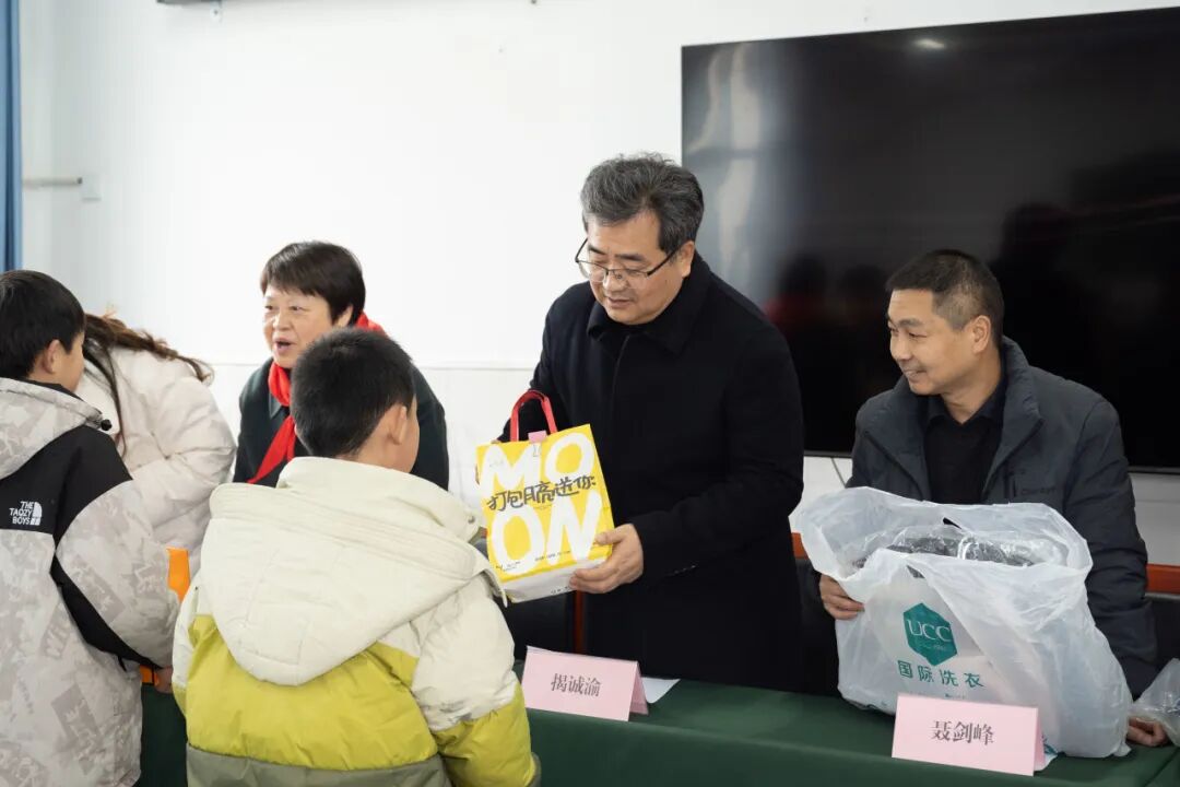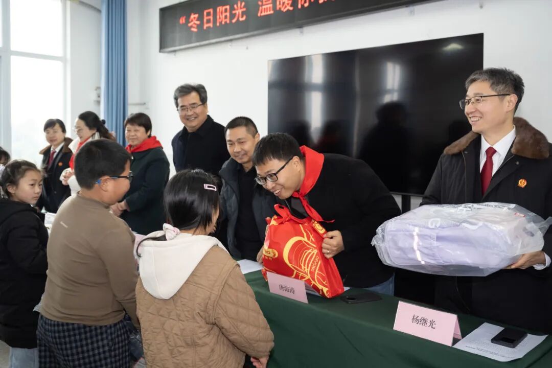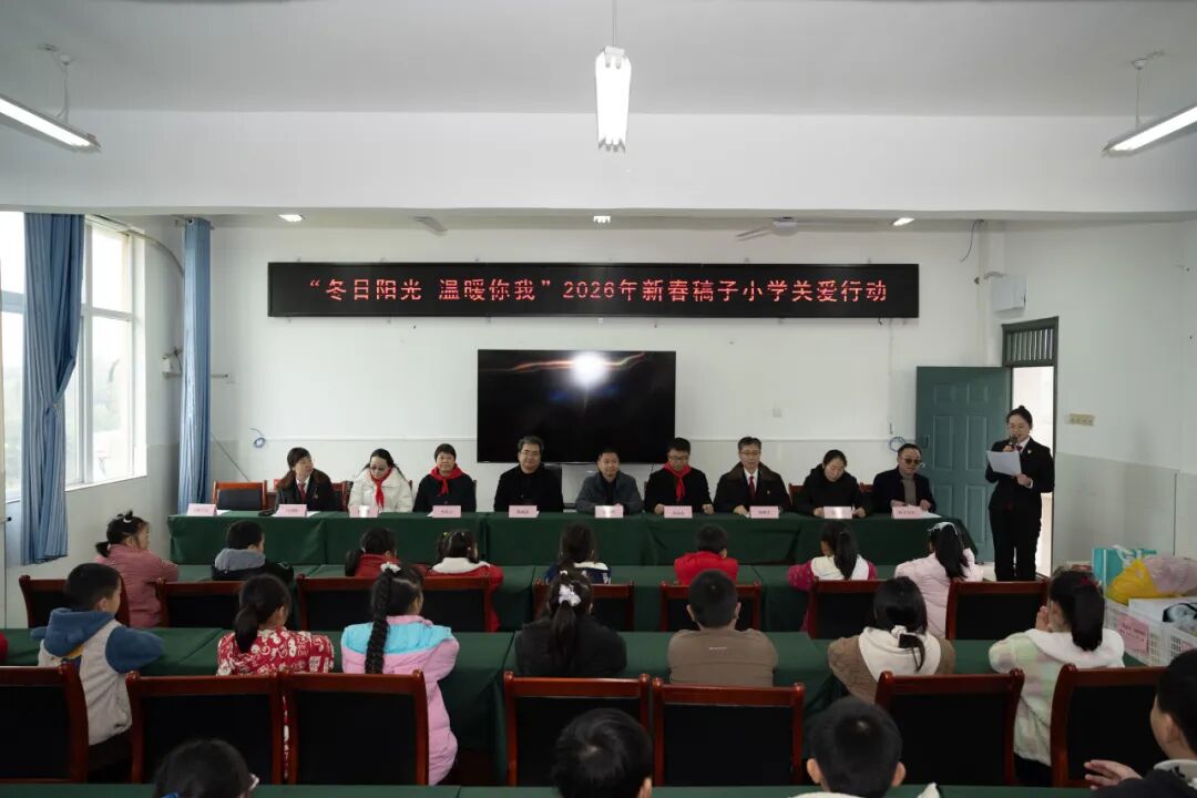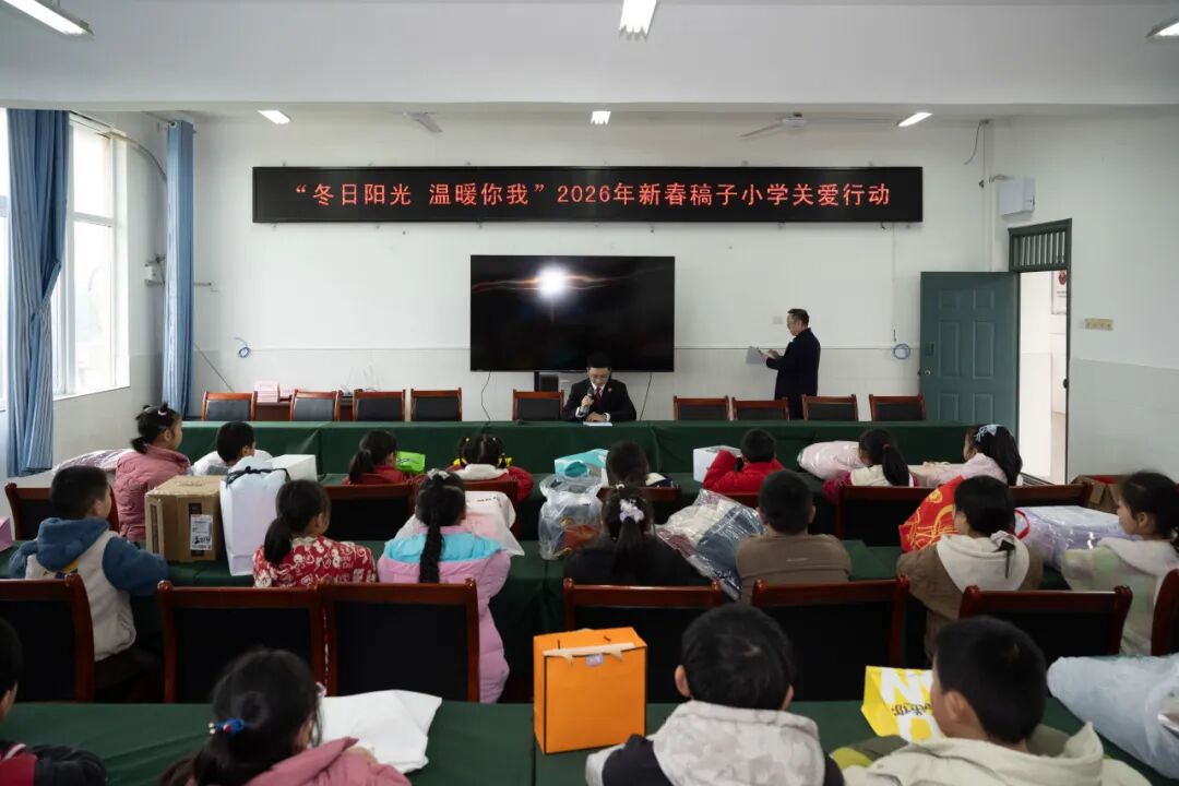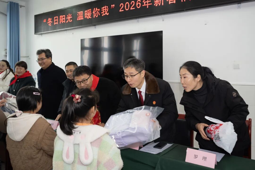 寒冬送暖,爱满童心。近日,重庆市江津区人民法院携手区关工委、团区委、区妇联以及石蟆镇政府,走进江津区稿子小学,开展“冬日阳光•温暖你我”2026新年关爱行动,用爱点亮孩子们的“微心愿”。江津法院党组书记、院长揭诚渝参加活动,并给孩子们送上新年礼物。