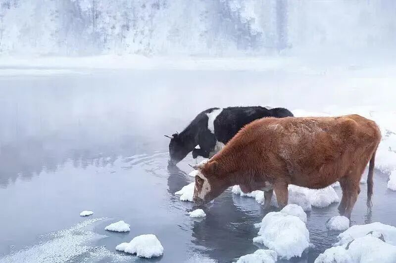 阿尔山雾凇的“顶流”打卡地!因河底温泉涌动,这条河在-30℃的寒冬里依旧潺潺流淌,水汽氤氲间,两岸的树木挂满霜花。清晨时分,雾气与雾凇交织,阳光穿透林间,折射出钻石般的光芒,偶尔还能遇见牛群在河边饮水,随手一拍都是大片。