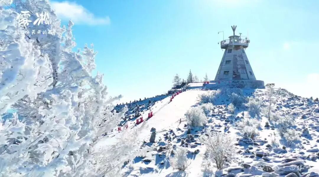 想要俯瞰雾凇全景,来这里准没错!登顶白狼峰,脚下是茫茫雪原,眼前是玉树琼花,凛冽的寒风掠过,冰晶簌簌飘落,壮阔的雪景让人忍不住惊叹大自然的鬼斧神工。