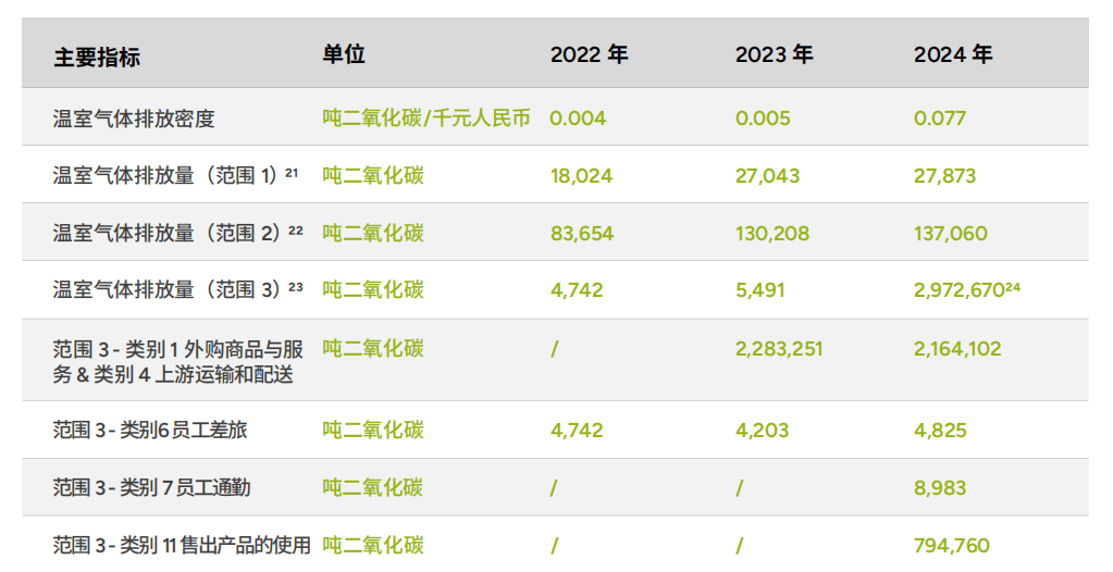 小鹏汽车在ESG报告中披露范围三碳排放。 图表来源:《小鹏汽车2024年环境、社会及管治报告》
