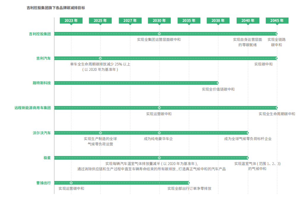吉利控股集团旗下各品牌碳减排目标。图表来源:《吉利控股集团2024可持续发展报告》