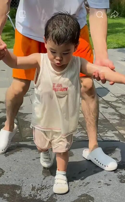 跟着精力无限的劲劲,来来回回跑了若干趟后,他累得生无可恋,还被网友嘲笑:劲劲,这是溜爹呢!