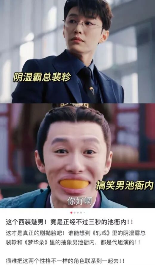 谁能想到,霸总裴轸和铁憨憨池衙内,都是代旭一个人演的。