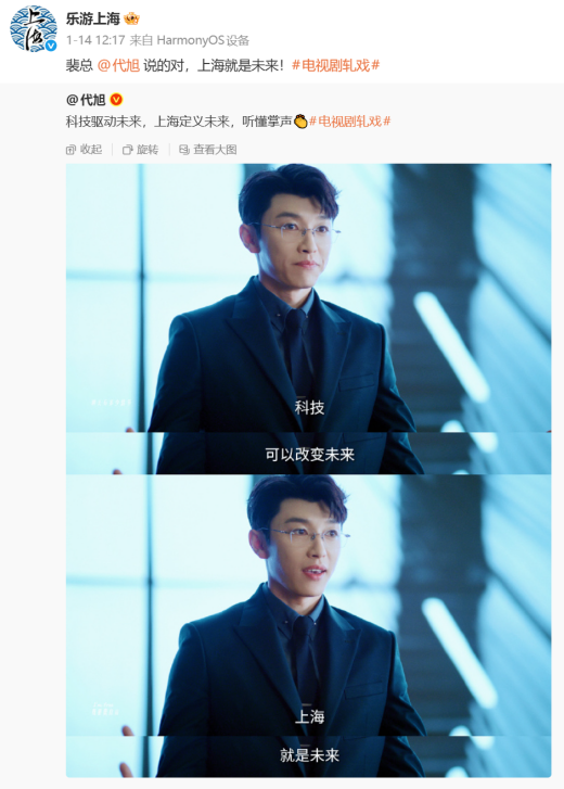 网友夸代旭:“把上海文旅的活儿干了。”