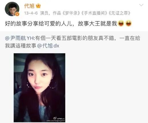 曾经很长一段时间,代旭和尹雨航的社交媒体用的都是情侣头像。剧宣期间他改为角色头像,剧播完后又悄悄改回去。