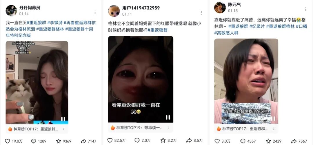 虽然不同平台拥有不同的用户属性、内容逻辑与传播机制,但令人意外的是,《重返狼群》很快引起了全民的参与和讨论,并衍生出了不同的解读方式。