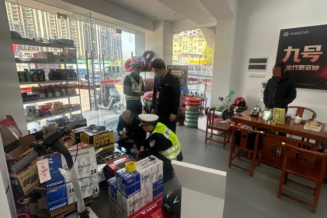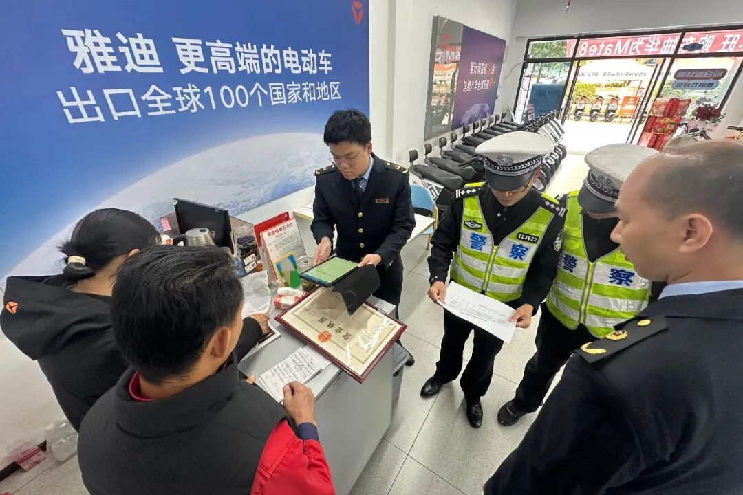 河源公安交管部门联合市场监管局等部门,深入辖区雅迪、九号等重点电动自行车、电动摩托车销售经营主体开展源头治理专项检查。