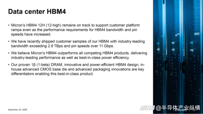 SK海力士在2025年财报会上宣布,其HBM4已于9月完成开发并启动量产,2026年全面放量;三星在2026年新年致辞中直言:“我们的HBM4展现了真正的差异化竞争力,甚至有客户感慨:Samsung is back。(三星回来了)”;美光则在2025年9月的电话会议中确认:HBM4将于2026年Q2正式量产出货,下半年进入产能爬坡。
