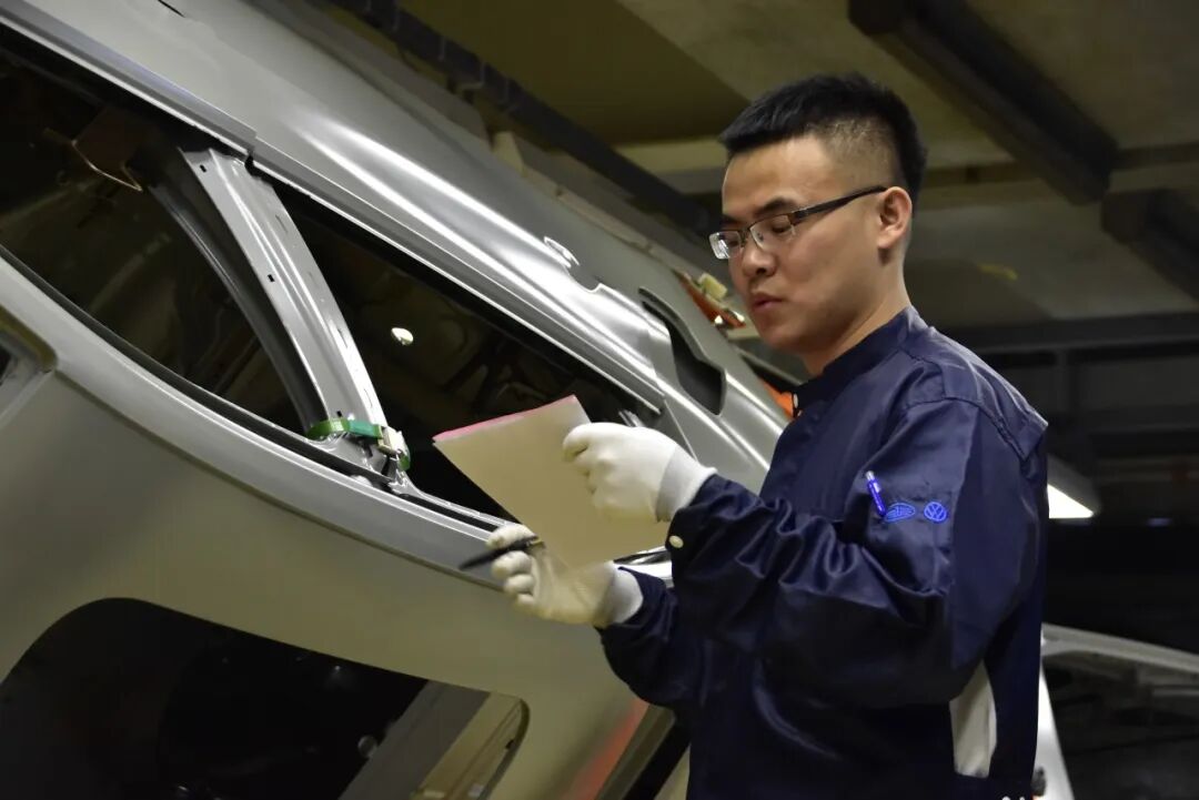机器人喷涂PVC胶,会在车身留下成百上千的小脏点,大的不足1毫米,小的要借助高光照射才能看清。于力带队攻关,将脏点数量降至20个——这在业内已属顶尖水平,却成了他的“心头刺”。