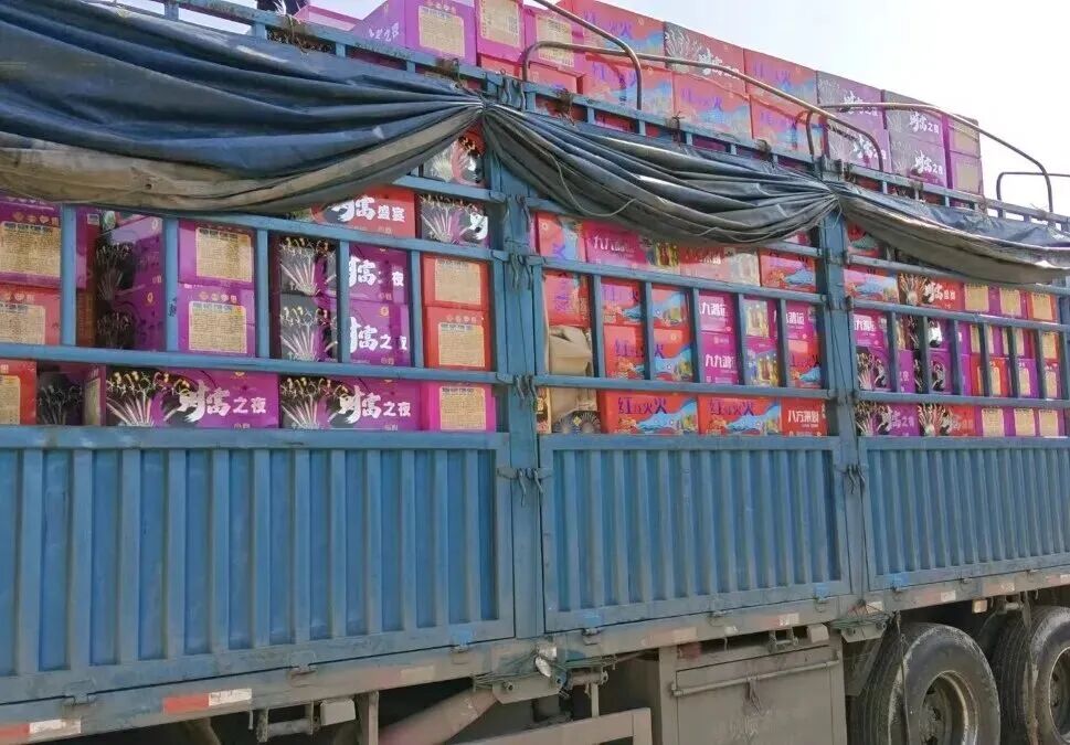 现场发现一满载烟花爆竹的高栏货车