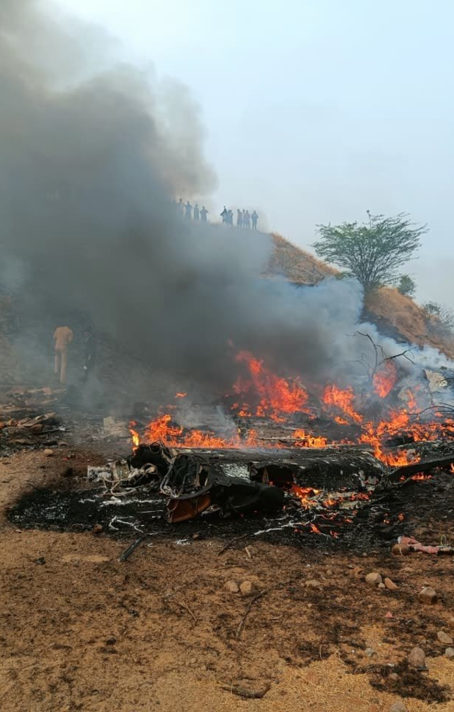 1月28日,救援人员在印度马哈拉施特拉邦浦那地区的坠机现场工作。新华社发(印亚新闻社供图)