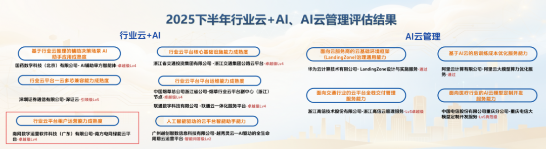 2025下半年行业云租户运营评估结果公布!南方电网绿能云平台通过评估!