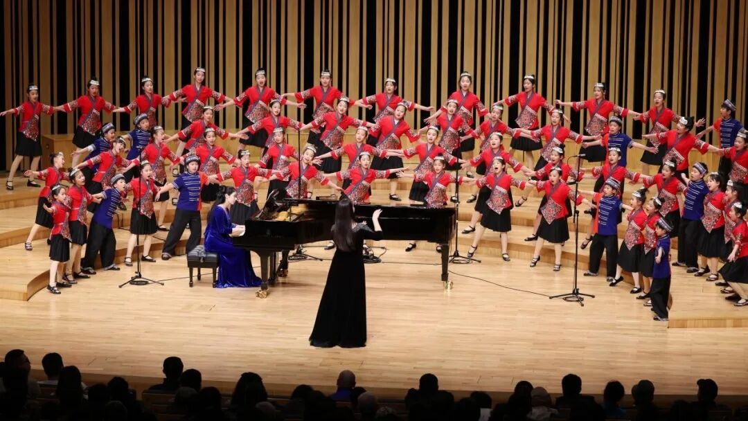 人大附中经开学校金童爱乐合唱团分别带来《侗乡春色·蝉之歌》《BiBi Hotz 两颗心》两首歌曲。